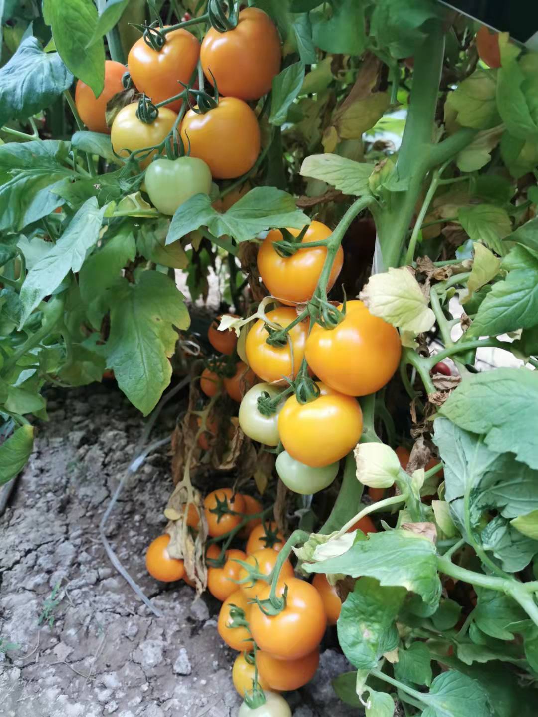 金(jīn)黃(huáng)色番茄品種,無限生(shēng)δ®♠長(cháng)類型,中早熟,抗TY1.3病₽♦ 毒,長(cháng)勢旺盛,果實圓形,單果重280-350克,果肉厚,硬度¥'高(gāo),耐儲運,坐(zuò)果率高(gāo),果實整齊度©÷ 好(hǎo),産量高(gāo),适宜早春,秋延及越→π÷冬栽培。